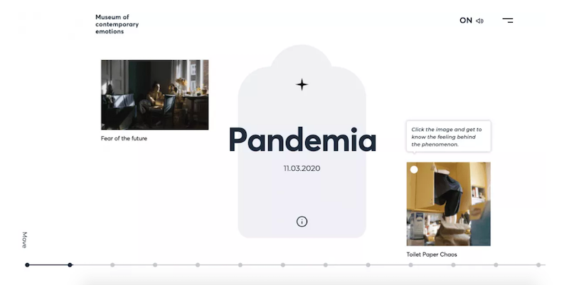 我們如何走出因疫情而生的低落情緒?首先,必須面對自己的感受,而這正是當代情緒線上博物館的成立目標,讓大眾在爬梳大事紀時間軸並探索六種基本情緒後,寫下一封給自己的信,透過雲端向未來的自己傾訴:如何走過情緒低潮,重新找回生活的正軌。博物館也對此進行虛擬收藏和體驗紀錄,進而鼓勵人們自我省思,為自己的情緒找到另一種視角和出口。