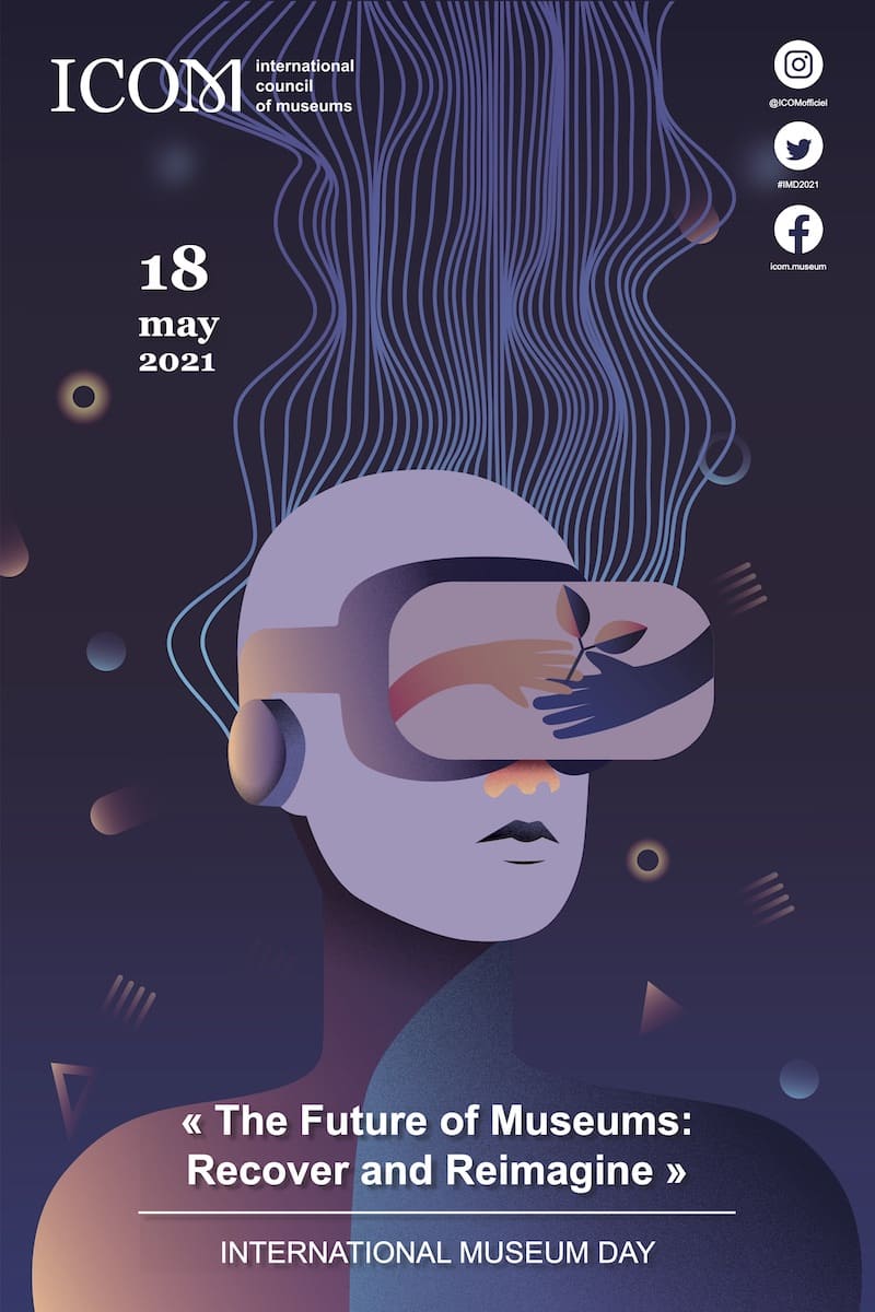 2021年國際博物館日主題為「博物館的未來:復甦與新象」(The Future of Museums: Recover and Reimagine),廣邀各博物館、博物館專業人士及社群共襄盛舉,一同創造、想像並分享文化機構(共同)創造價值的嶄新實務作法與創新商業模式,攜手探索當前社會、經濟及環境挑戰下的未來展望。