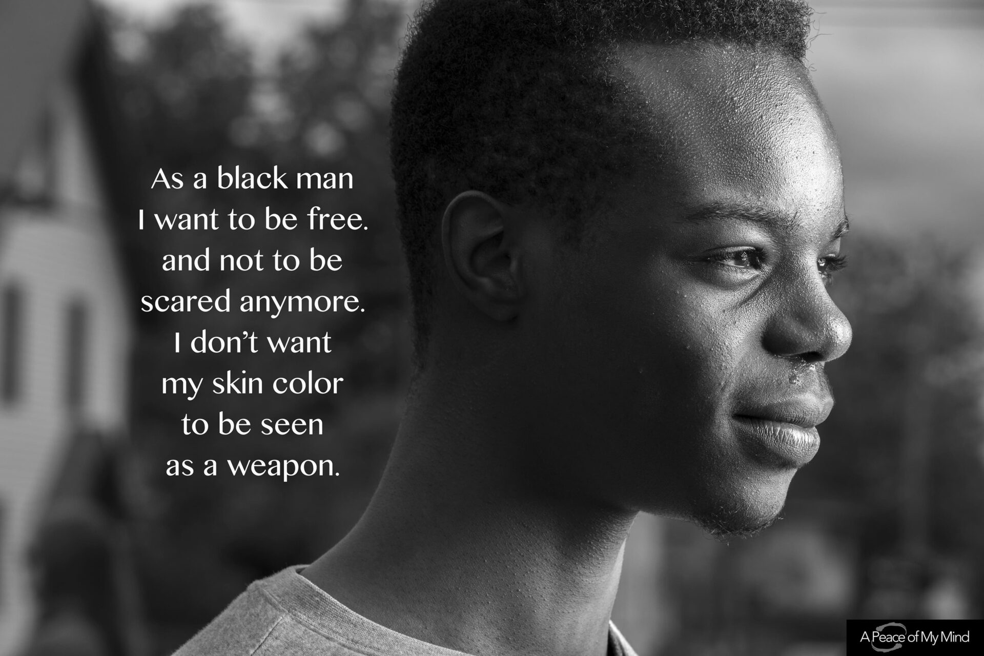 我不希望每次我或我的兄弟出門時,我都要熱淚盈眶,擔心生命是否有危險,只因為我們做和大家一樣的事。(Photo credit: John Noltner, “What do you want to say?” Taken at 38th and Chicago on 5/29/2020)