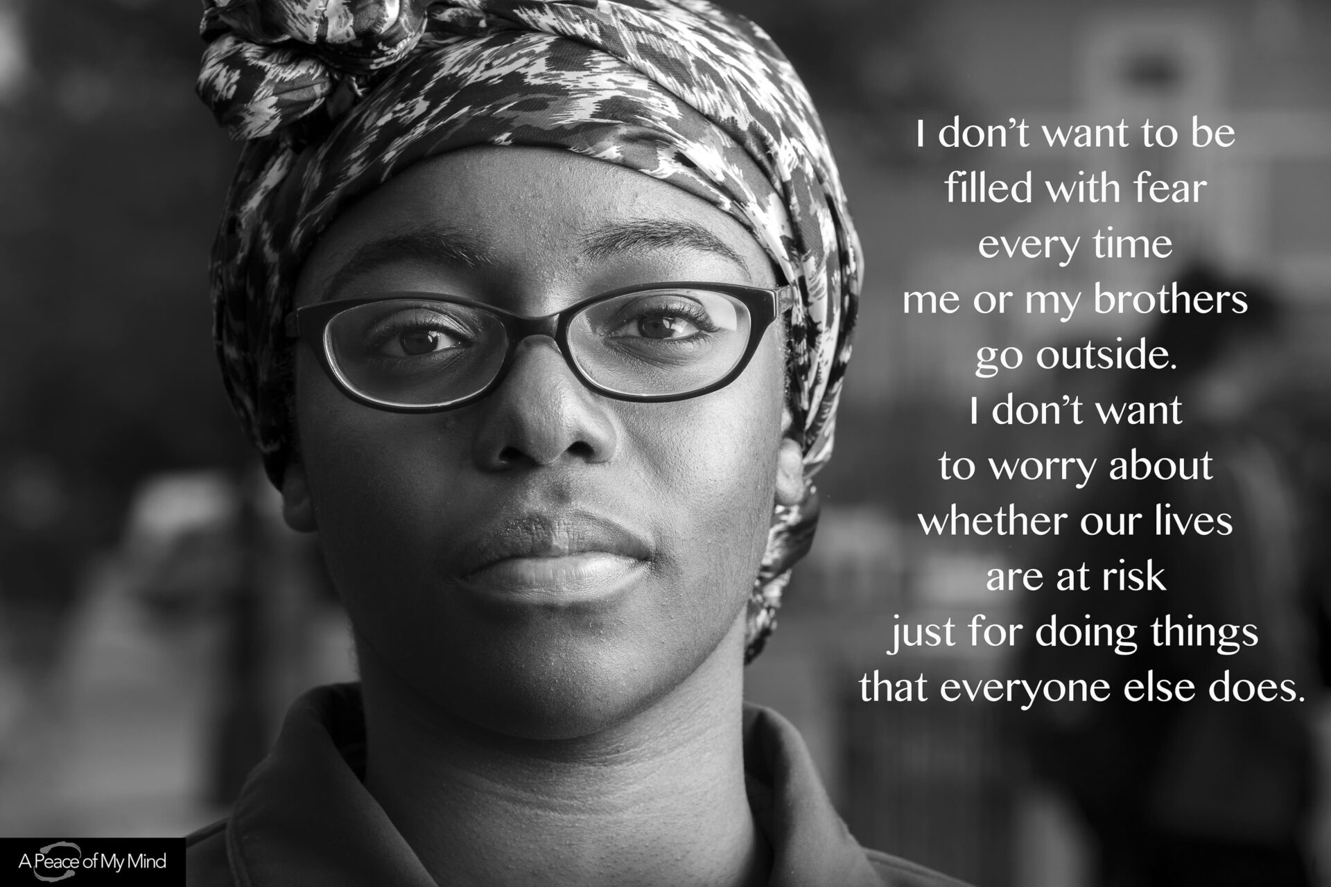 我不希望每次我或我的兄弟出門時,我都要熱淚盈眶,擔心生命是否有危險,只因為我們做和大家一樣的事。(Photo credit: John Noltner, “What do you want to say?” Taken at 38th and Chicago on 5/29/2020)