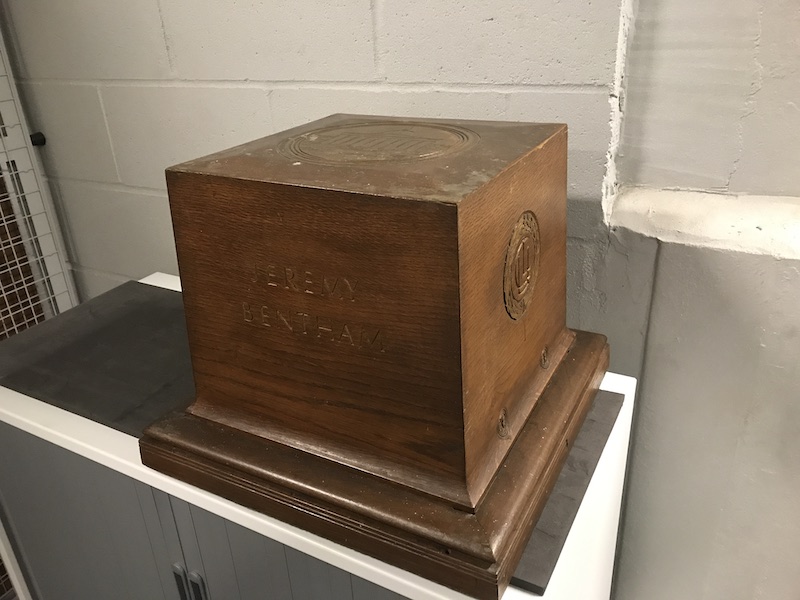 邊沁先生的思想影響了倫敦大學學院的創辦人,其遺體於1850年由Smith醫師捐贈給倫敦大學學院,由下轄眾多博物館與典藏單位的UCL Culture管理,遵照其遺願展示遺體,並由法學院成立「邊沁專案」(Bentham Project)持續研究其思想理論。