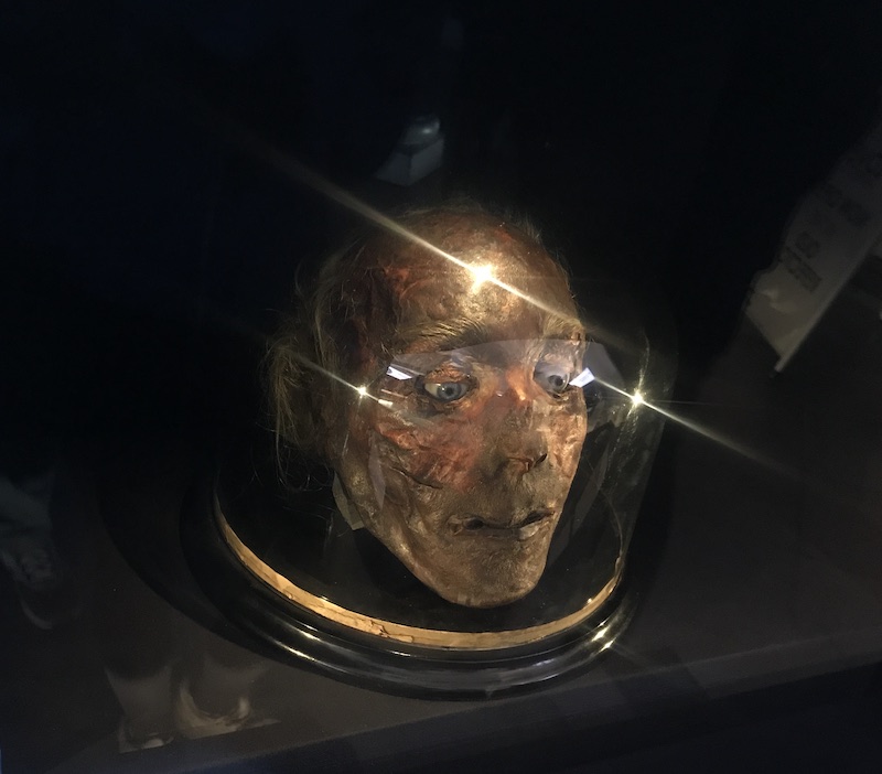 2017年10月2日開幕之倫敦大學學院特展《身為人類意味著什麼?》其中具話題性的是首次展出的邊沁頭顱。(何慕凡 攝影)