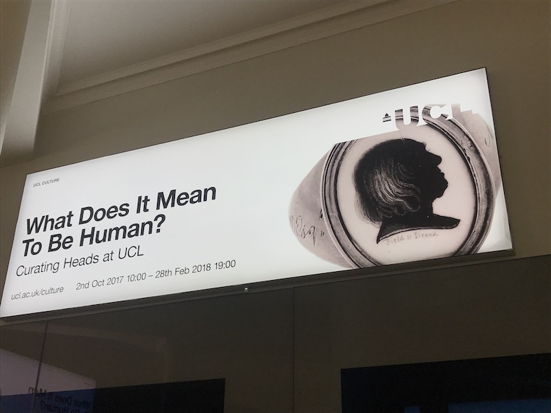 2017年10月2日開幕之倫敦大學學院特展《身為人類意味著什麼?》其中具話題性的是首次展出的邊沁頭顱。(何慕凡 攝影)