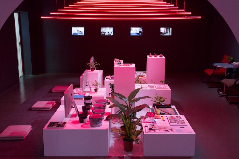 這些門票依照其所具備的象徵意義被分成四類,即:「藝術物件」、「互動參與」、「多重感官」和「視覺平面」,體現了門票在形式與材質上所具備的多元性、設計師的思維模式,以及對藝術作品的仿擬。而貫穿兩個展間的圓弧拱門與當代館的入口形象相同,形成「製成品」與「製作過程」、「裡面」與「外面」之間的過渡。暗紅色的「機制生產」展示空間則宛如當代館紅磚瓦的內部空間,在紅光之下策展人與設計師的創意雲集之地,不同物件如長尺、裁紙機、訪談影片、打孔器等展示在高低起伏的展示臺上,形成「實」的空間,並與彼此產生對話,將門票的構思、加工、完成到使用的過程展現在觀眾眼前。而牆上展示的四張照片呈現的是4個錯落在當代館各處的製作場域,再現了門票的製作場景。