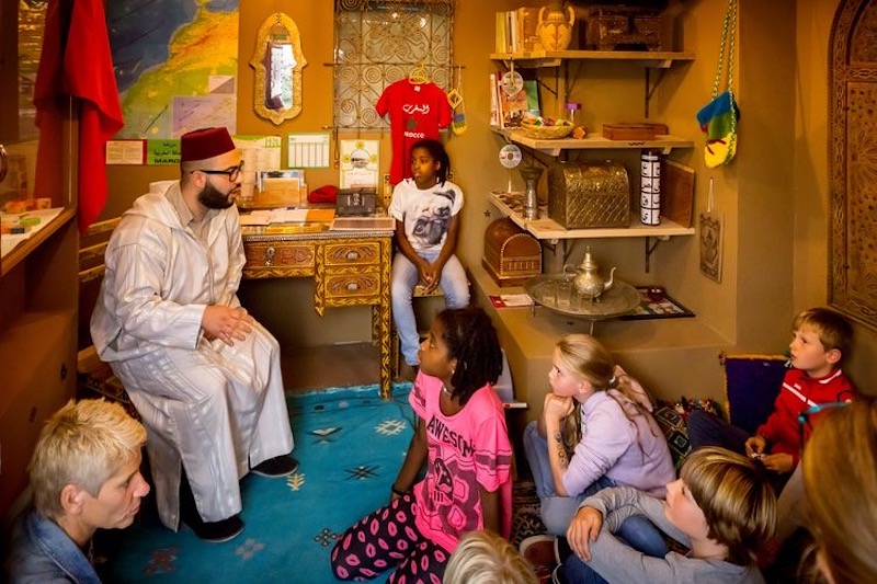 《看見摩洛哥》主題常設展中,兒童在擺設摩洛哥物件的房間了解當地文化。(Design by Kossmanndejong, photography by Thijs Wolzak)