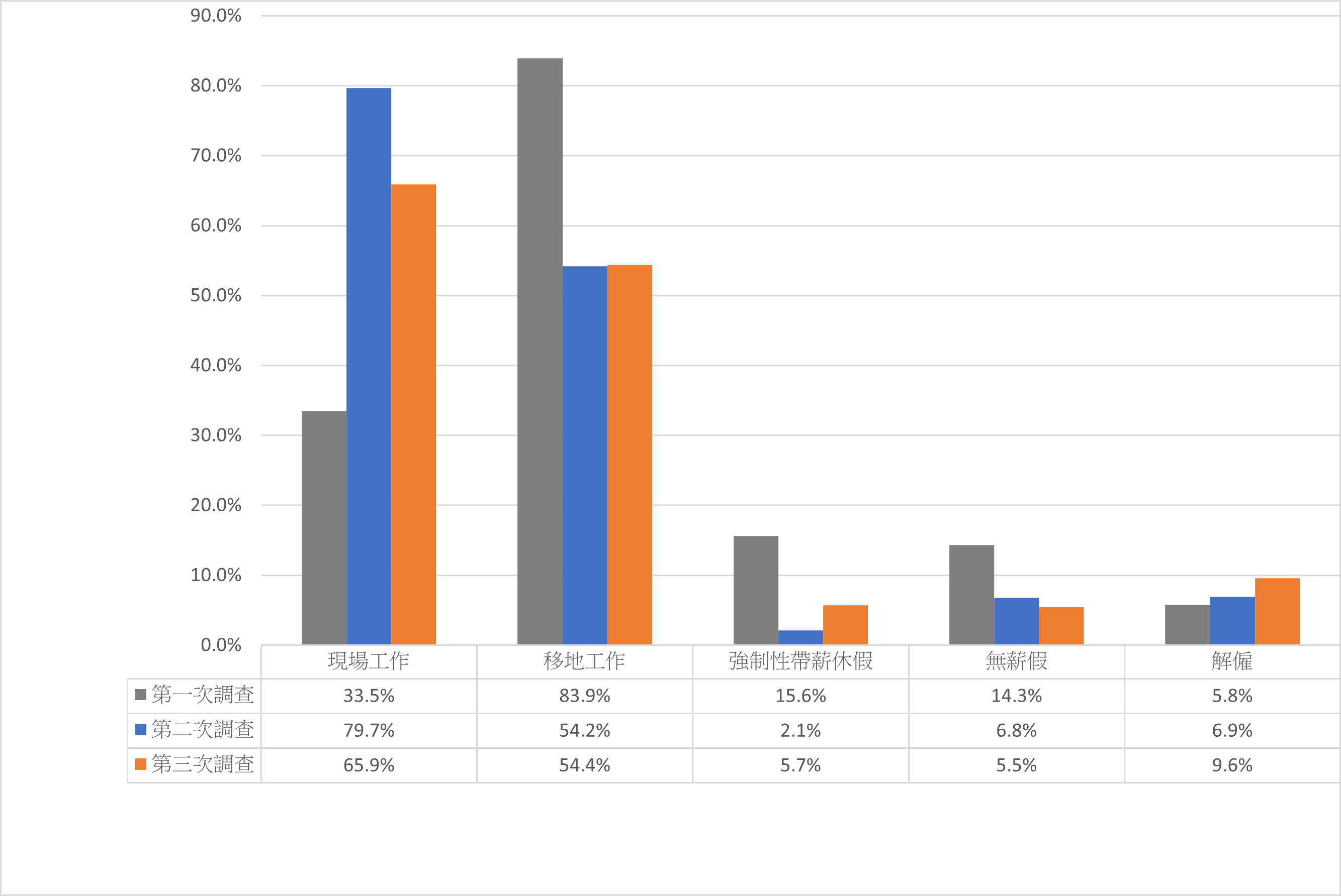 全球博物館從第一次調查的94.8%閉館、第二次調查的51.2%開放,到第三次調查的35.6%開放,顯示疫情起伏對博物館開館與否影響重大。值得注意的是,第三次調查的無薪假員工比例小幅下降(5.5%),但被解雇者比例卻略微上升(9.6%),職員的生計問題與生涯規畫令人擔憂。