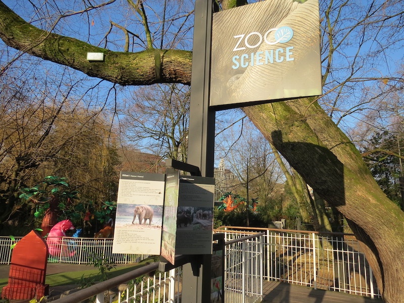 為了讓觀眾了解科學研究對野外保育計畫的重要性,園內散佈多種特殊展示牌。例如,亞洲象展場前的展示牌,呈現印度的人象衝突問題,並講解動物園在當地嘗試的解決方法,讓民眾意識到現代動物園的保育職能,鼓勵一同加入守護動物的行列。