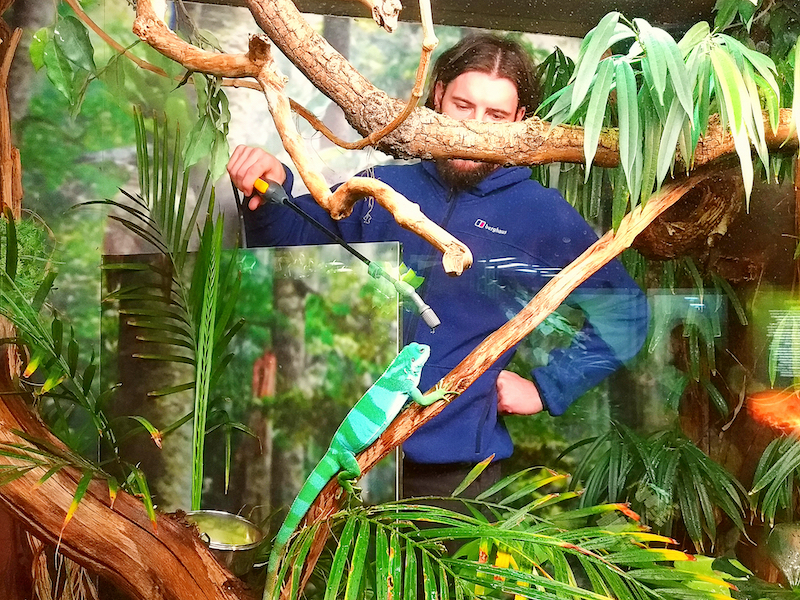 曼徹斯特博物館除了圈養展示瀕危的兩棲爬蟲,比如圖中的斐濟帶紋鬣蜥(Brachylophus fasciatus),更採取實際行動保障野外族群的未來存續。(蔡穎昌 攝影)