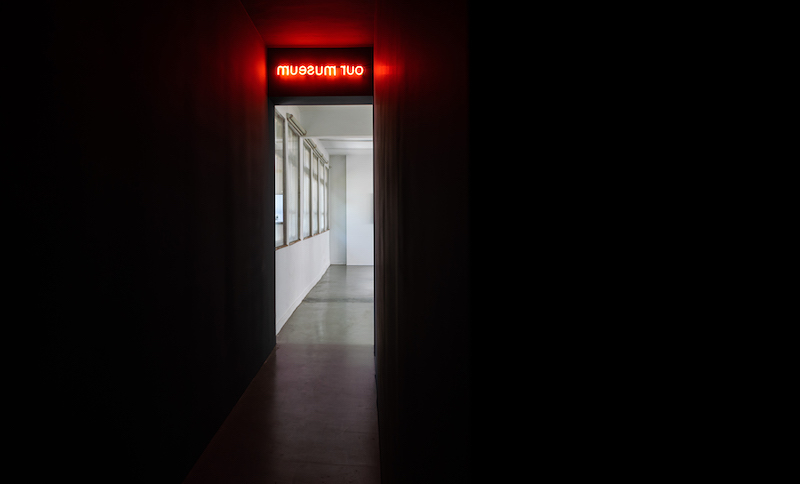 《現在幾點鐘》是對「時間」定義的重新探問,以七組作品代表七個時間感知,邀請觀眾走入展場,創造自身的狀態轉換儀式,喚回具創造力的原初動能。其中象徵「紀念」時間儀式的是「有章藝術博物館經典作品展」,為館方與策展人一起策劃的展中展,由典藏研究組陳彥伶組長精選9位臺藝大師長與傑出校友作品,再由策展人設計展示空間。經典展入口是一條黑暗的長廊,入口上方有一排霓虹燈形塑的小寫our museum字樣,與博物館外觀斗大的OUR MUSEUM相映照,長廊盡頭一面鏡子反射著一閃一滅的霓虹光,引領觀眾步入彷彿時間暫停的空間,與塵封多年的典藏相見。