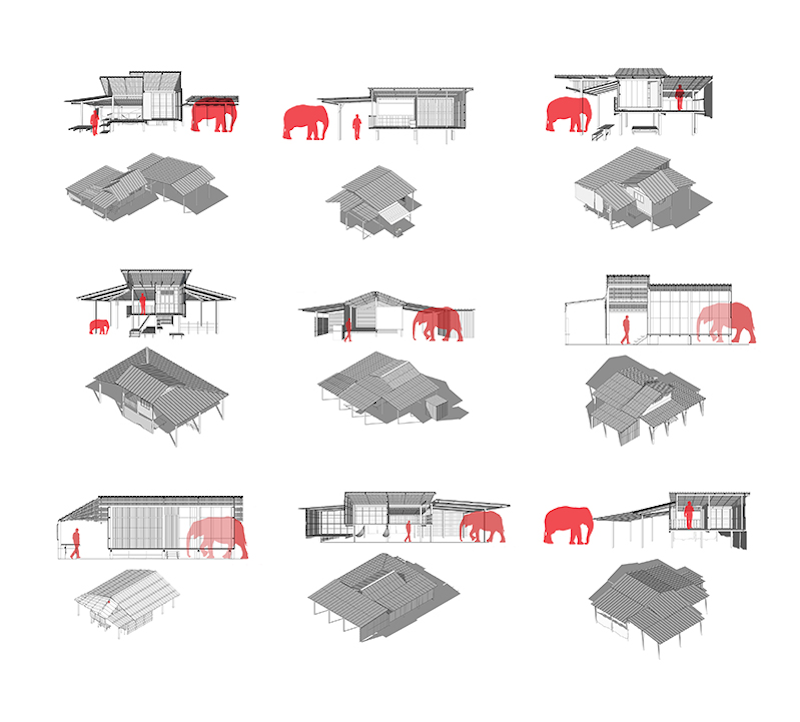 泰國館由泰國藝術大學(Silpakorn University)教授Apiradee Kasemsook擔任策展人,提出國家館議題中極少數與動物有關的建築空間,以國家動物代表「大象」(elephant)與人類共存空間為議題,呈現東南亞原住民庫伊族(Kuy people)與大象密切共生共享的建築特色。依泰國東北部當地地理環境所需,發展出人類與大象共用的大型斜面遮陽空間,大小結構系統相互支撐與保護,作為休憩、工作與集會等多功能場域。可見大象成為泰國人民生活中的親密夥伴,象徵人類與動物共存的平衡,更提醒人類應向其它物種虛心學習。