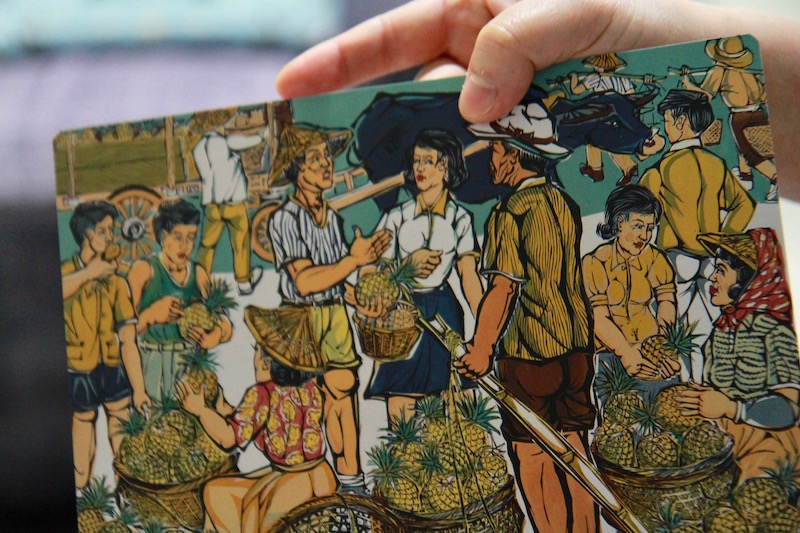 「讓長輩自己講,聆聽很重要。」倩佩表示,在創齡寶盒活動中,藏品圖卡扮演開啟話匣子的重要角色,促使年長者延伸出不同的詮釋跟情感連結。例如圖卡中又甜又酸的「鳳梨」,使一位參與者想起家庭的甜蜜及離家的鄉愁;長輩們也愛好有著「鬥蟋蟀」、「玩陀螺」這些連結早期童年記憶的圖像。