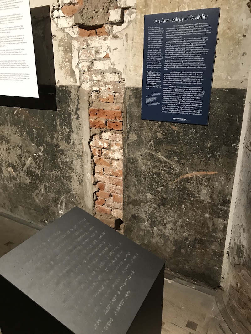 整體策展思維從「身心障礙考古學」(An Archaeology of Disability)觀點切入,以希臘雅典衛城(Acropolis)建築遺跡探討空間可及性(accessibility),決定誰能參與過去並創作未來,現場展示點字說明版與手語影片,試圖喚起觀眾「身心障礙者亦為人類歷史的一部分」,反映策展人思考當代建築發展趨勢的同時,亦融入社會文化平權理念。