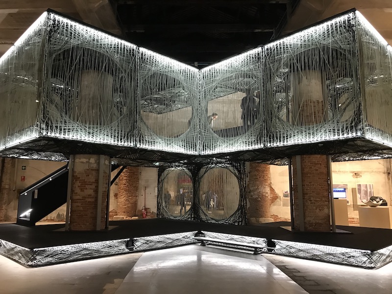 然而,所有作品依照個別子題,被分別規畫在綠園城堡(Gardini)與軍火庫(Arsenale)兩個主展館。觀眾如在未能充分理解策展理念的前提下,確實難以跟著策展人的思維軸線進入每個議題的作品概念。即使展出第1、2、3議題的Arsenale是以單一動線規劃主題與空間配置,但第4、5議題的Gardini主展場在動線規劃上,並非以單一動線引導觀眾參觀展覽,造成難以達到大量建築裝置與作品閱讀上的整體關聯性,反而被切割成許多細瑣而龐雜的個別子題,實屬可惜。