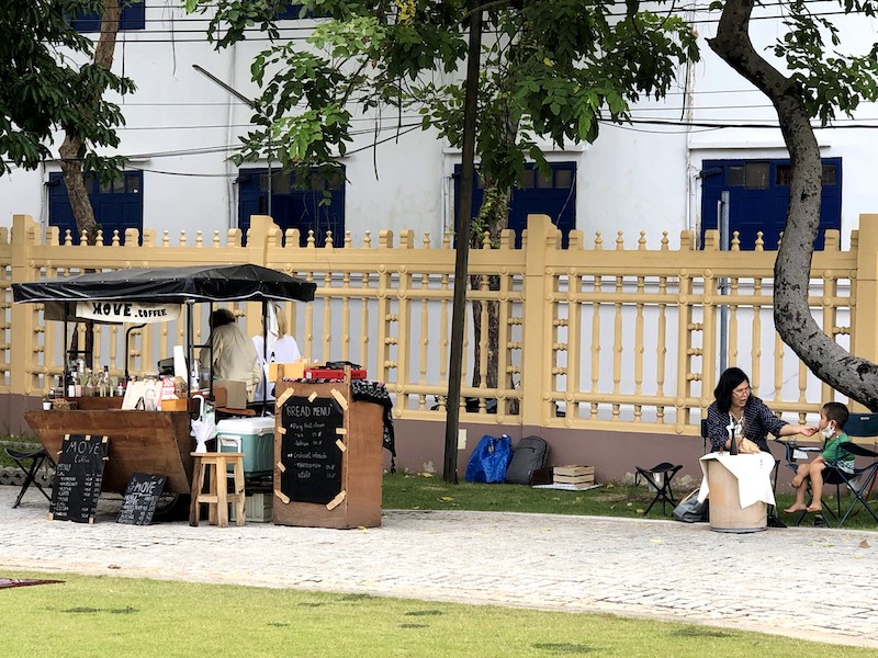 Move.coffee則不存在這樣的問題,這間行動咖啡攤開設在暹邏博物館的入口廣場,屬於戶外空間,店家除了可以提供外帶服務,也可以在符合社交安全距離的條件下提供戶外座位。時至七月,曼谷每天確診數高達二至三千名;七月底時,全國每日已突破一萬七千人染疫。因此從7月10日起先實施為期14天的嚴格活動限制,之後像是沒有盡頭似的不斷延長。泰國政府祭出更嚴格的管制,除了餐飲只能提供外帶服務或關閉,晚間八點過後更是禁止外送。