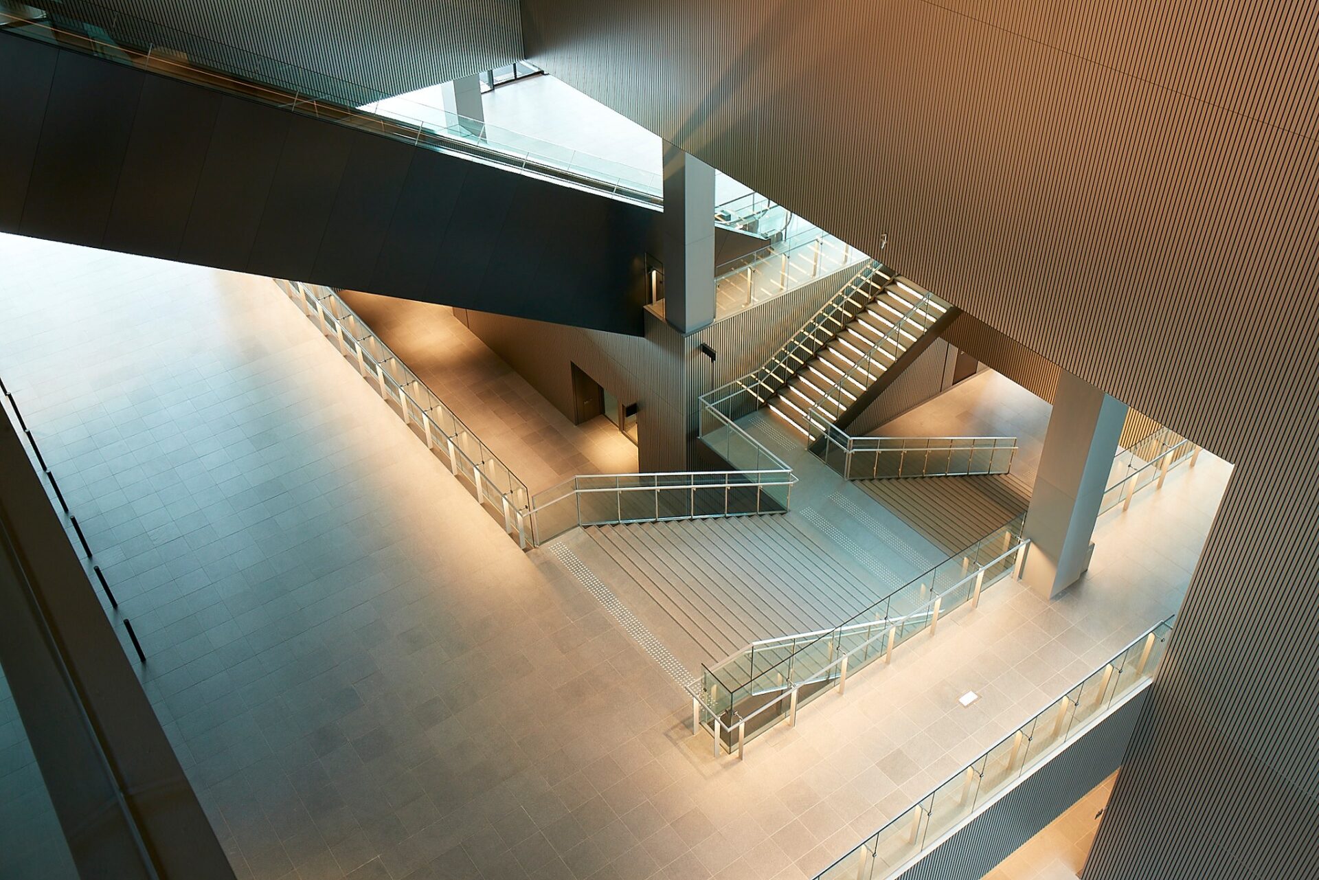 位於堂島川與土佐堀川之間的大阪中之島,自中世紀以來便是商業、物流繁盛的集散地。這塊土地本是串連中之島東西的重要連結點,也匯引著人流往各個方向去。立基上述背景,美術館建築故意捨棄特定的動線限制,沒有所謂的「正面」,而以複數入口承接來自四面八方的人流。