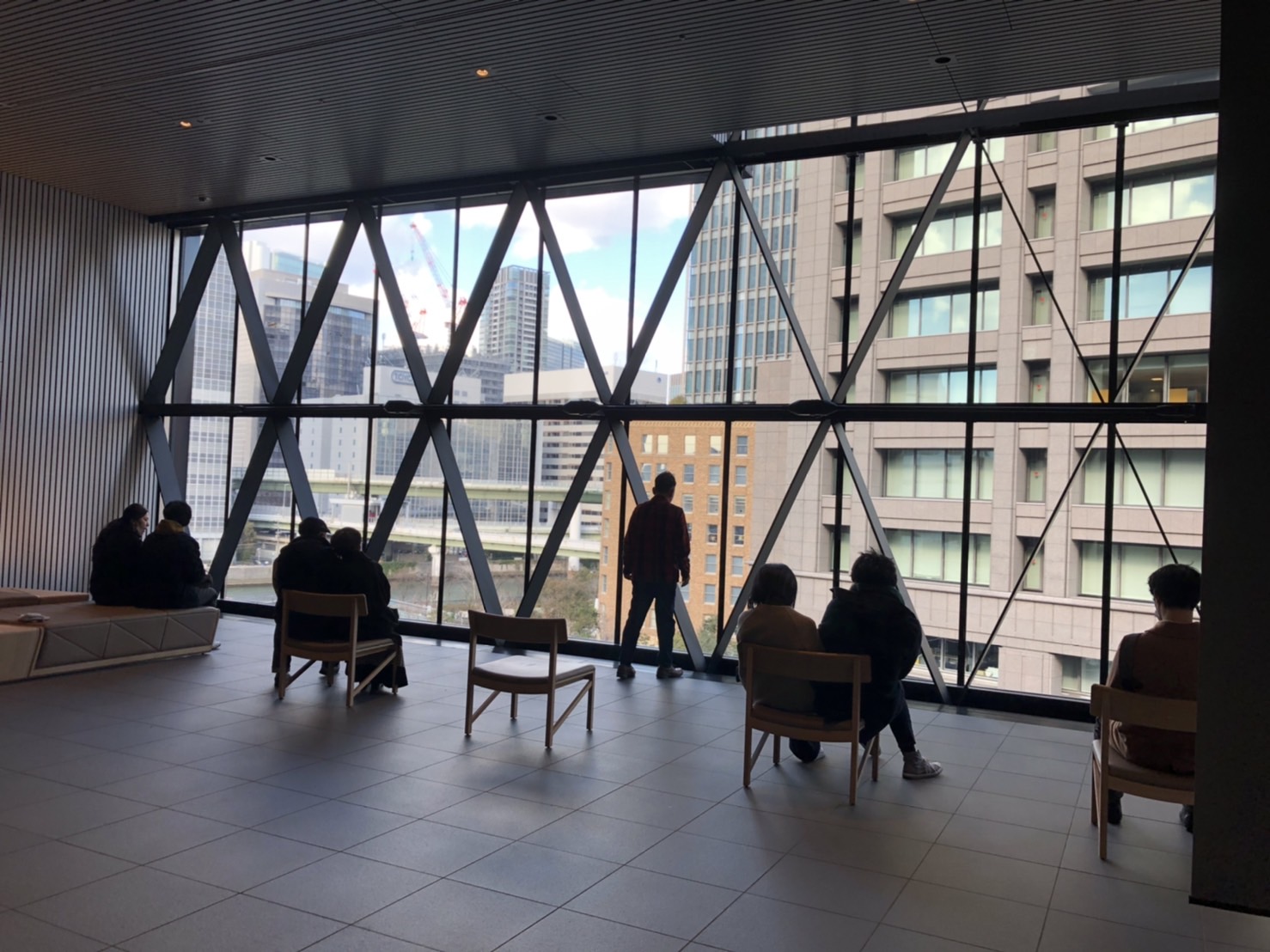 貫穿1至5樓,讓陽光從天花板由上灑下的挑高空間是美術館的中心,將來這裡還能作為在展示間外,具有全館視點的巨大展示空間。建築設計師遠藤先生稱其為建築「龍骨」,連結著各樓層的遊步空間,建構出另一層次的立體廣場。