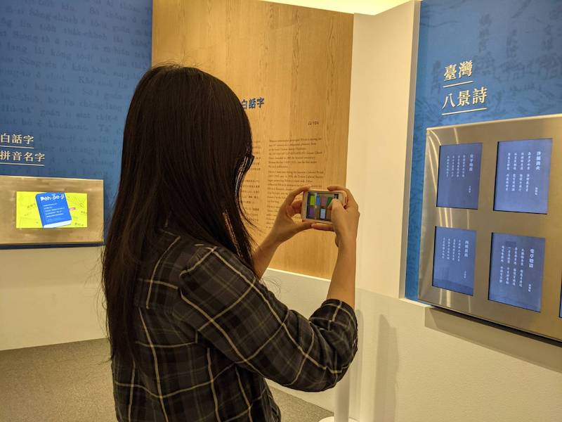如何運用各種科技,和不同年齡層觀眾的休閒嗜好連結,也是臺文館近來努力的方向。從二樓走往展場的路上,蘇館長指向一樓的展場大廳:「從這裡可以清楚看到我們的新舊建築。」1915年落成的臺南州廳紅磚建築與2002年增建的現代建築彼此共構出新的公共空間,只見年輕觀眾在大廳操作文學傳書機的互動書本、或拿著實境解謎遊戲在展廳間穿梭,陽光從天窗灑入大廳,文學在此長出新的生命。
