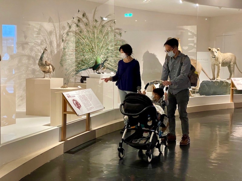 然而筆者發現,許多親子觀眾受動物標本吸引駐足討論,但當踏入同婚展區,多數家長會忽略孩子提問快速離開。如何在展場中引導觀眾進行更多思考?「從自然界的多元性別到人類的LGBT」主題導覽[註1]便利用婚姻展與常設展動物標本,講解自然界同性性行為和性別變換案例,過程中不時有觀眾加入聆聽、伴隨導覽互動,成為更加瞭解LGBT議題的契機。
