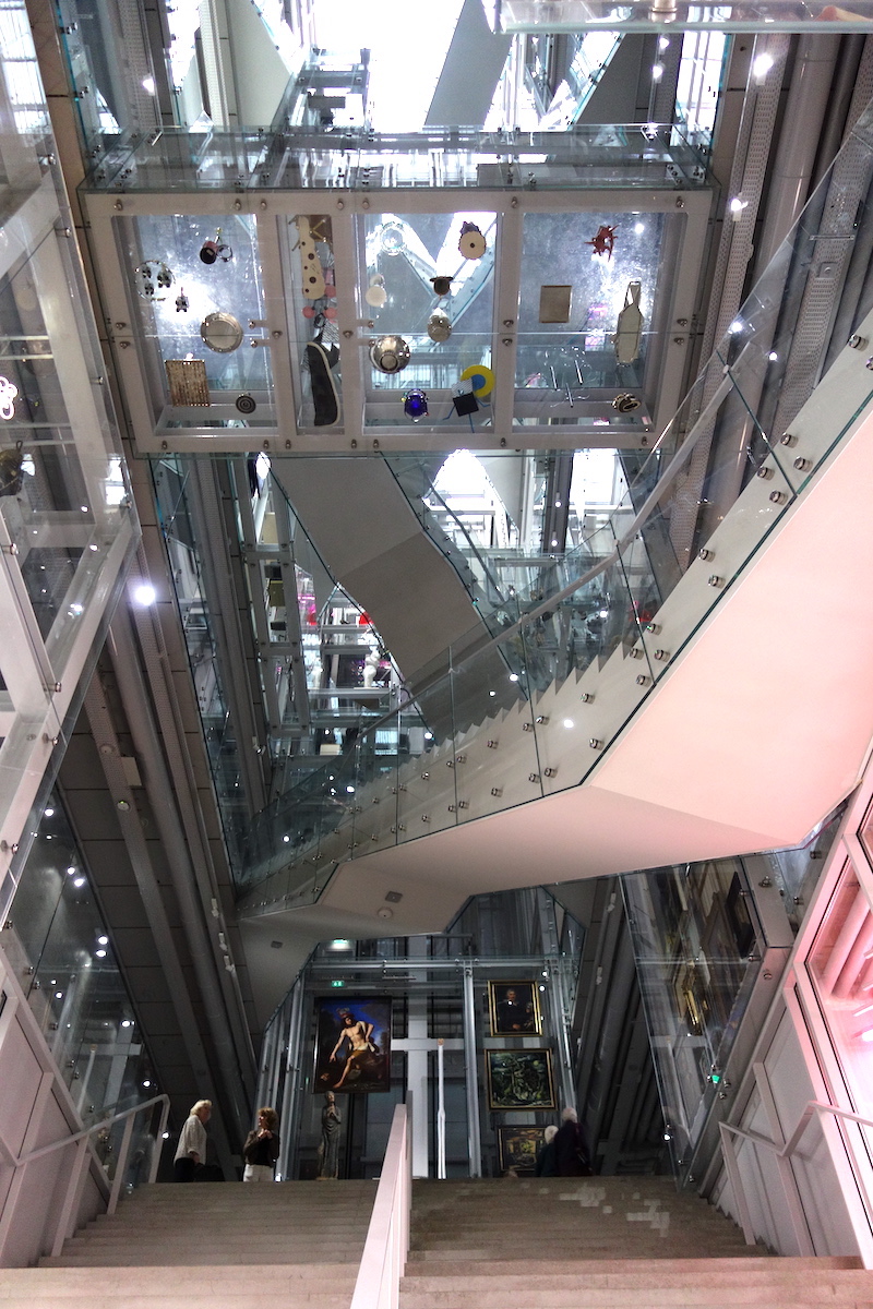 典藏庫內部的樓梯設計宛若迷宮,對於初次進入典藏庫的觀眾而言,這樣的參觀動線讓人困惑,作品既非統一安排在建築角落,也不是走上階梯就能直達,乃是彎彎繞繞,一邊欣賞透明展示箱中的作品,一邊觀望懸掛在半空中或牆邊的作品。某些作品必須站在階梯上或搭乘電梯才能看見全貌,某些平面作品更只能看到背面的編號、展覽出借註記或藝術家簽名。同時,作品展示箱使用QR code取代說明牌,對作品有興趣的觀眾,需特別下載典藏庫專用App才能取得作品的詳細資訊。