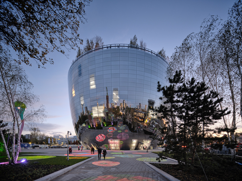 博伊曼斯・范・伯寧恩典藏庫的外觀形似碗狀的沙拉盆,全鏡面的外牆映照出鄰近的博物館公園(Museumpark)景觀,內部設計則充滿了透明樓梯、展示箱、可窺視典藏室與修復室一隅的大片玻璃。其建築理念呼應開放式典藏庫的目標:公開、透明的傳達典藏相關資訊。