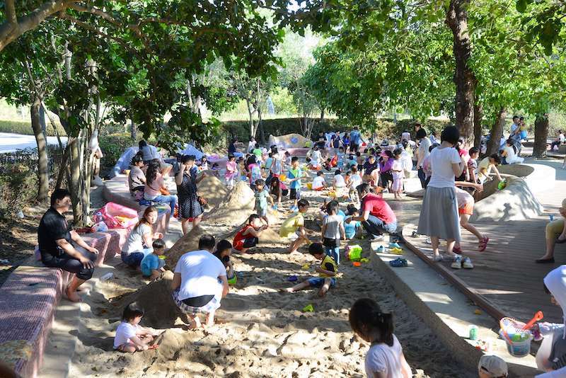 從歡聲笑語的展場中走出,高美館教育暨公共服務部主任張淵舜以溫和的聲音,講述參與兒美館從零至今的發展歷程,他認為最困難的時刻反而是成立之初,將「遊客服務中心」轉變成「兒童美術館」的摸索過程。面對充滿垂直立柱、長方形磁磚的拘謹建築,在不能「打掉重練」的情況下,該怎麼軟化每一個角落?又如何改善相對狹小的展間?與前館長李俊賢討論後,兒美館團隊建立了多運用「弧線」、「有機」的設計元素,同時主張「最好的設計者就是使用者」,透過連續觀察記錄兒美館內外空間的使用狀況,逐步調整硬體設施和參觀規範。例如,進入展間要脫鞋的措施,便是因應館前廣受親子喜愛的沙坑,進而設立的管理機制,既維護展場環境,也營造了看展的舒適感。