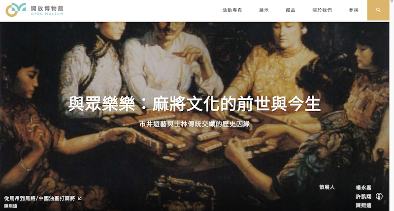 中研院數位文化中心架設的「開放博物館」平台,推出跨機構數位藏品及策展模組服務。(來源:開放博物館官網)