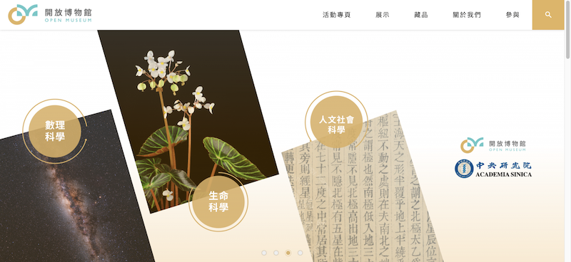 中研院數位文化中心架設的「開放博物館」平台,推出跨機構數位藏品及策展模組服務。(來源:開放博物館官網)