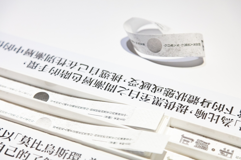 此展的出口是文學館留給觀眾的禮物。策展團隊引用東野圭吾《單戀》中的句子,將黑至白的漸層分成八個色階,設計成能夠黏貼成手環造型的紙帶,邀請觀眾依據當下的身體狀態或感受,挑選自己在性別光譜中的位置。