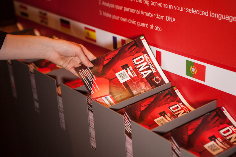 「阿姆斯特丹DNA」位於博物館二樓,觀眾一上樓,便能看到鮮紅的主視覺向觀者介紹阿姆斯特丹的「DNA」,即四項城市價值:企業精神、市民美德、創造力、思想自由。阿姆斯特丹是以經商致富的城市,市民富有強烈的企業精神,而財富也帶來仕紳階級對於貧苦民眾的關懷,並於16世紀設立市民孤兒院(Civic Orphanage),這也是阿姆斯特丹博物館的前身。而從藝術家林布蘭到當代的網路城市,創造力也深植其中,宛如這座城市的基因,並透過貿易向全球輸出自由思想的價值。