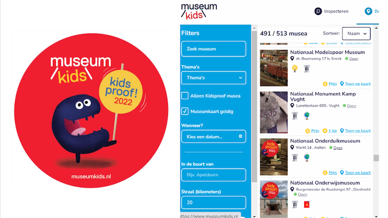 為了鼓勵兒童多使用博物館資源,荷蘭博物館協會設立了兒童專屬入口網Museumkids.nl,旨在讓兒童以遊樂的方式與博物館藏品產生連結,希望他們可以在博物館中「夢想並學習成為自己想要的樣子」。所有隸屬於荷蘭博物館協會的館舍,在網站上都有專屬網頁,提供最新展覽、參觀重點提示等資訊,孩子也能自行上傳參訪照片與影片,與其他小朋友分享參觀心得,並規劃下一次的博物館之旅。