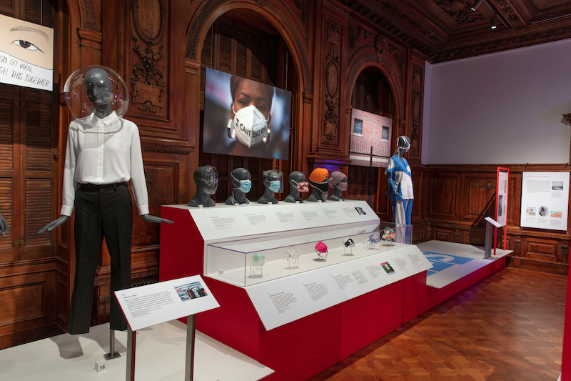 戴口罩和穿防護衣並非對抗流行病的新興做法,而是流傳許久的古老方式,一系列記錄面罩設計的歷史文獻成為展覽焦點。尤其在新冠疫情大流行之際,各國出現防護設備短缺的狀況,許多民眾開始自製口罩、面罩等防護配備,例如:可清晰看見全臉的面罩、方便聽力不便者讀唇語的面罩,以及藝術家茱莉亞・全(Julia Kwon)設計的譴責反亞裔暴力的抗爭口罩,呈現人們如何以創意關懷社會議題。