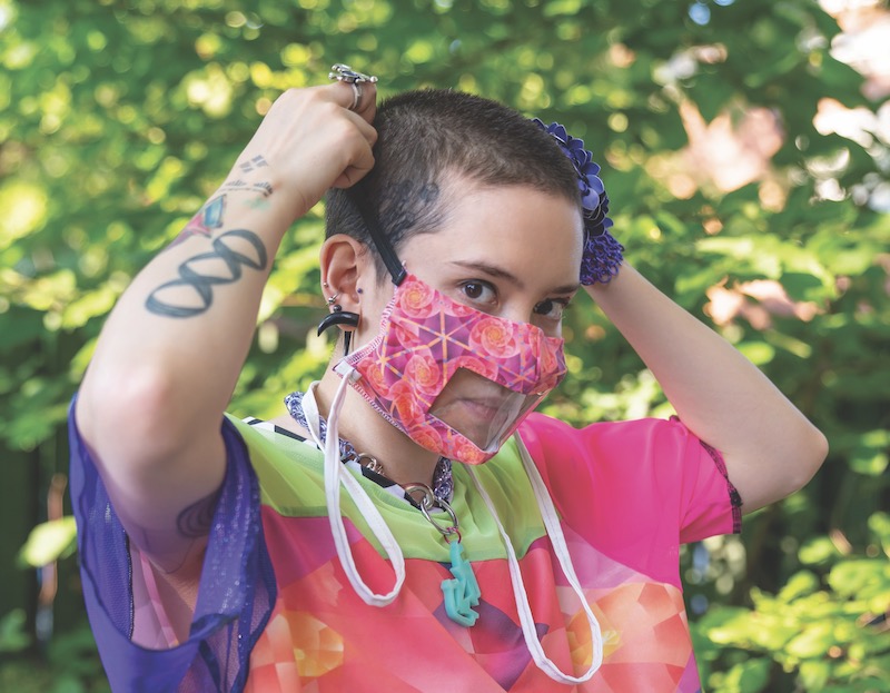 用二手衣物製作的口罩,中間的透明設計有助聽力不便者讀唇語。(Photo: © colectivo_multipolar)