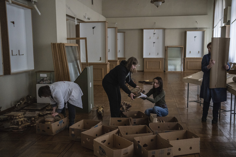 自俄烏戰爭開打後,烏克蘭各處的博物館皆在第一時間關上大門,想盡辦法保護館內珍貴的文物藏品,包含加速地將數位藏品清單完成並存至雲端、將藏品移到未公開的安全地點。根據來自基輔、駐布達佩斯的藝術評論家康斯坦丁·阿金沙(Konstantin Akinsha)之說法,俄國入侵烏國前幾週,烏克蘭文化政策部就已發出保護和可能撤離博物館藏品的指導方針 。