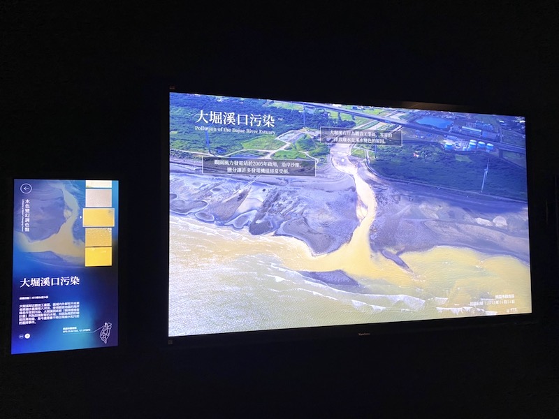 展區「與河映照的我們」藉由互動式設計的水色變換調色盤,突顯河川汙染及優氧化問題。其展示手法或可借鏡近年興起的衛星影像藝術流派(Satellite Image-Based Art;簡稱SIBA),透過超人類主義的太空觀點,解構自然環境變遷與人類活動影響所留下的軌跡。與齊導的傾斜航空攝影不同的是,SIBA除了以衛星影像為基礎外,亦進一步結合遙測學的影像分析技術與數位藝術的詮釋手法,剖析環境的跨時空樣態變化。