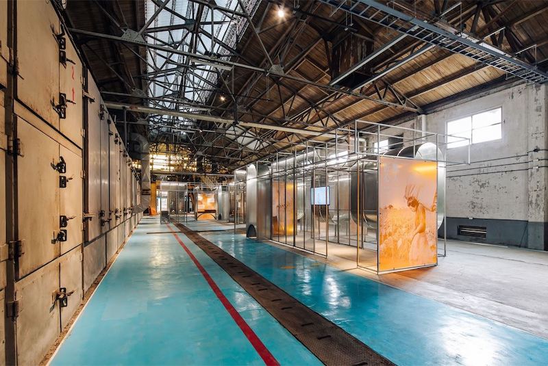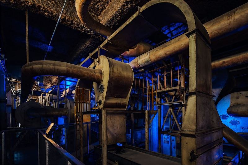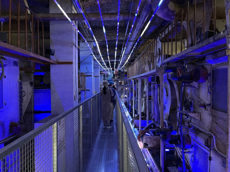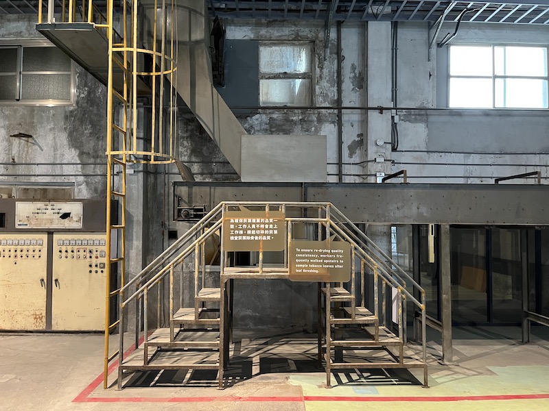 大型除骨機區則採取沈浸式設計,設計團隊創造出一條新的高架動線,安全地讓訪客穿越密集的機器量體,體驗3分鐘動態當代燈光音樂科技演繹的菸葉風選、分離、除骨、震盪加工流程,帶領訪客進入充滿想像力的超現實狀態。