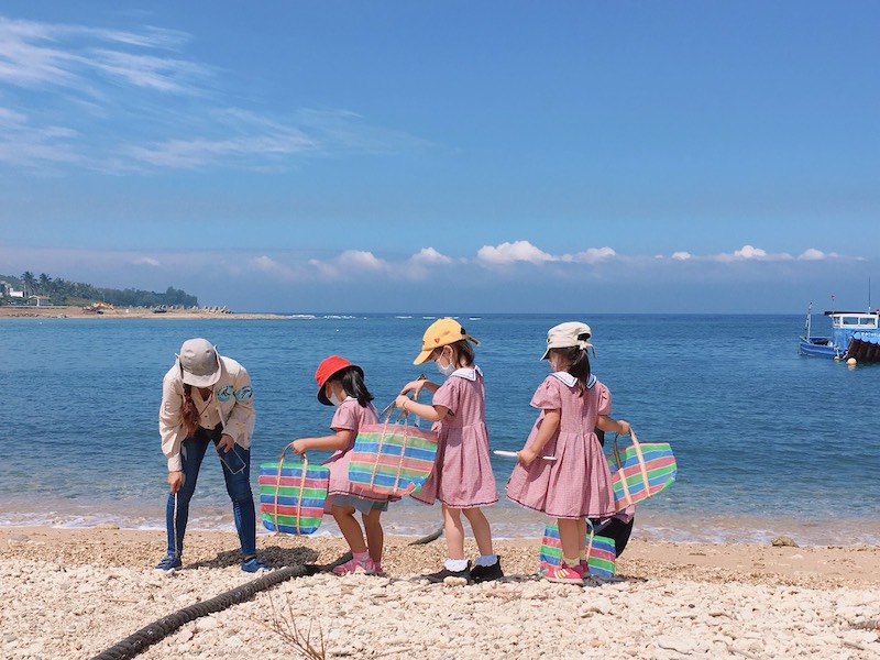 作為教育推廣平台,博物館帶頭做起的永續推廣行動具有關鍵的影響力。圖為國立海洋生物博物館與恆春半島幼兒園共同辦理的淨灘活動。(林冠吟 攝影)