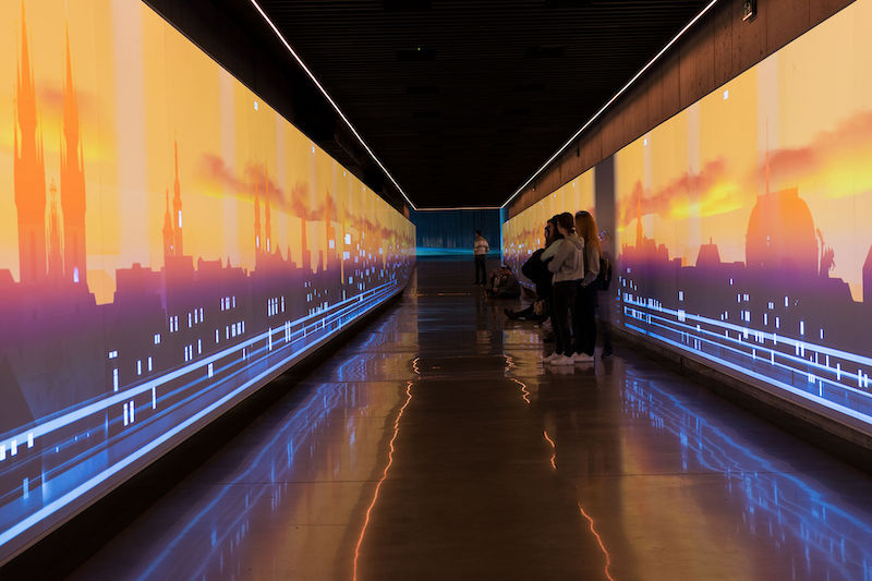 捷克國家博物館(Národní Muzeum)《走進歷史的殿堂》多媒體作品藉由沉浸式體驗空間,以時間線作為內容核心主軸,讓觀眾彷彿走入時光隧道,感受布拉格從古至今的樣貌。(Source: National Museum of the Czech Republic)