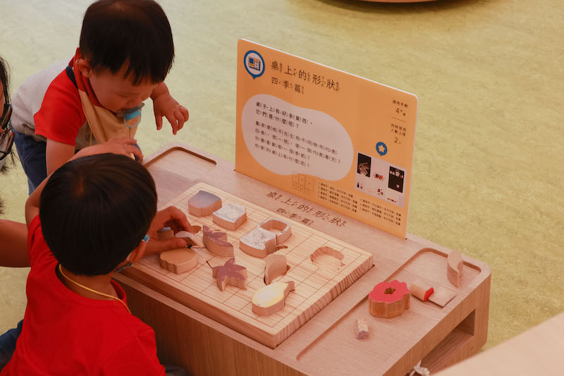 此外,館方也透過多次工作坊活動,了解兒童對展覽的理解程度,並徵詢他們的意見以改善教具使用方式。例如,發現兒童難以選擇想要的故事圖卡,而將圖卡分門歸類標示;也回饋希望圖卡多重前後鋪排的需求,將圖卡臺座調整為放置多張的設計,利於兒童安排角色多元場景、與同伴一起說故事。