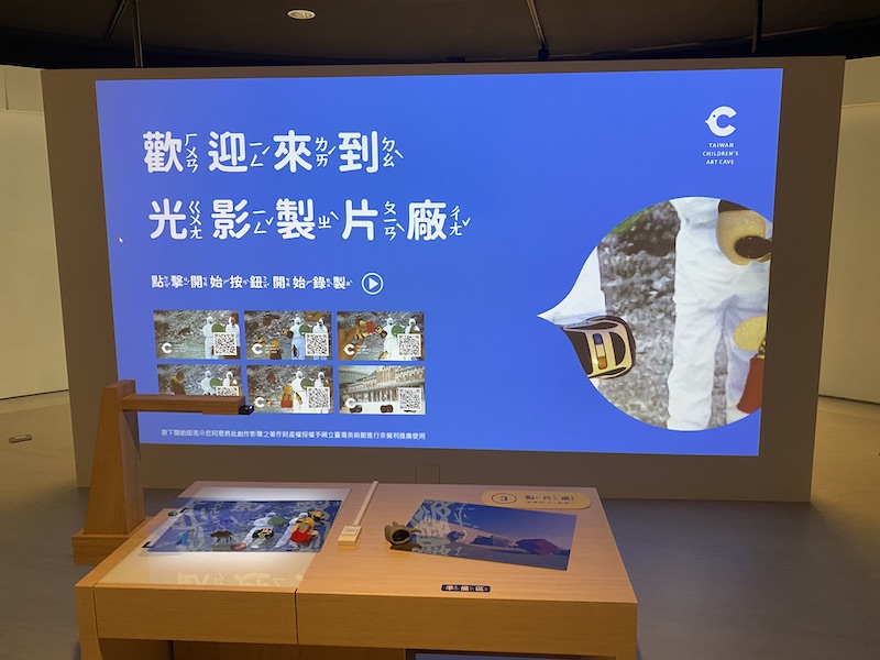 對於4歲以上兒童,則鼓勵他們恣意發揮創造力,引導其練習運用分析、思辨力。如在「典藏故事小劇場」,使用選自館藏品的故事場景、角色圖卡及圖卡臺座,讓孩子搭設屬於自己的小劇場,令人驚喜的是,孩子竟突發奇想發明出圖卡故事接龍的新玩法。而進階版的「光影製片廠」,則需先從角色池中選拔主角,搭配場景投影片創作劇本,最後在「製片廠」錄製影片,讓孩子了解如何創作數位藝術,並化身自編自導的小導演,練習如何組織故事,及與他人互助合作完成影片。