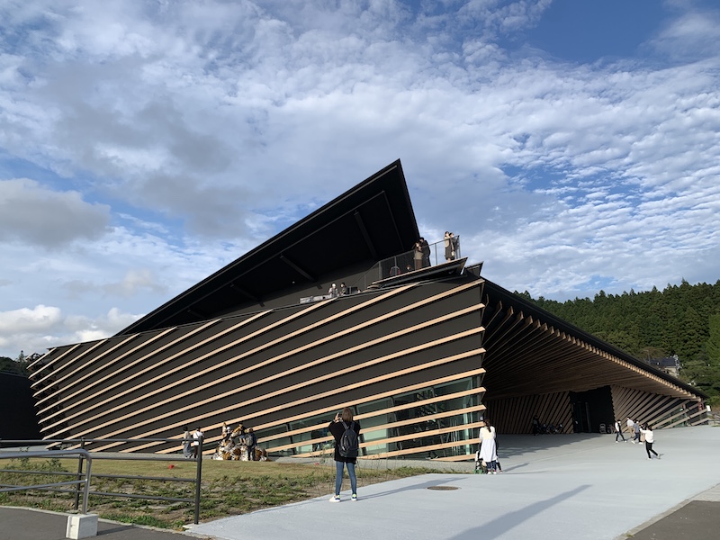 日本南三陸311紀念館於今年(2022)十月開館,建築由隈研吾操刀,以在地南三陸杉木材建造而成。觀眾除了參觀館內展覽外,也可走上頂樓觀景台俯瞰受災區域及遠眺海景。(劉怡辰 攝影)