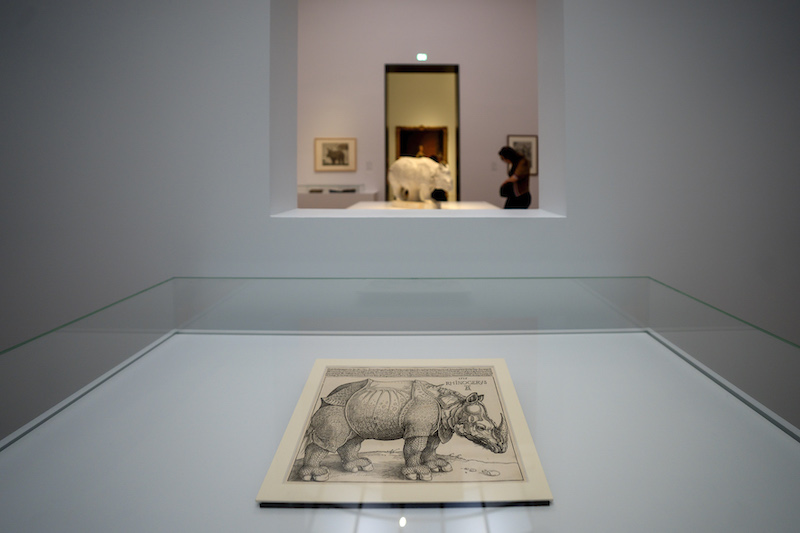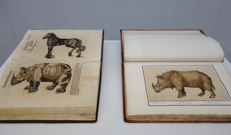 第二個展區,講的是犀牛克拉拉(Clara)十七年短暫的一生。克拉拉如此特別,在於牠是第一隻被運往荷蘭的犀牛。在此之前,犀牛在歐洲人心中是「曾經聽聞、卻未曾看見」的傳說生物,大眾多半以1515年杜勒描繪的犀牛版畫為依據,想像這穿戴盔甲、背上長角的龐然大物。進入展間,感受犀牛的鳴叫聲、杜勒的版畫與依版畫而塑的雕像,觀眾得以體會當時歐洲對犀牛的好奇與渴望。