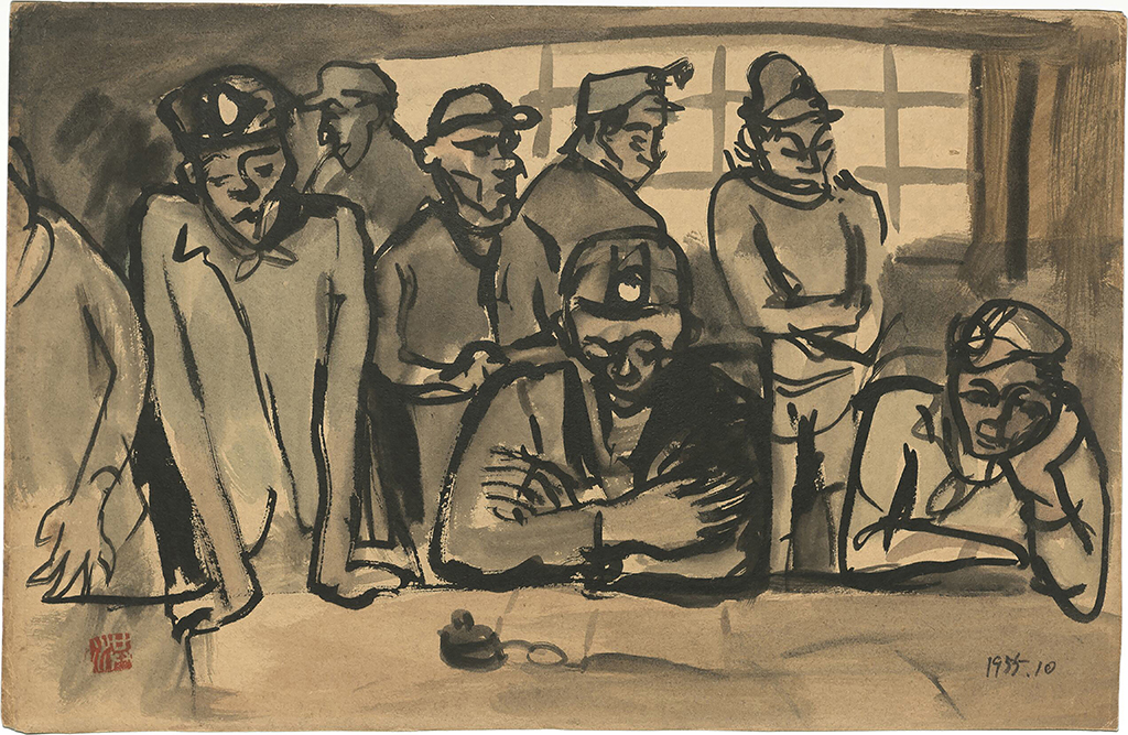 第一展區「卓爾不群的野武士—洪瑞麟的藝術歷程及藝術觀」展出洪瑞麟礦工作品37件與5本素描冊,突顯形塑出洪瑞麟獨特風格的長期堅持與對勞工的深厚關照。