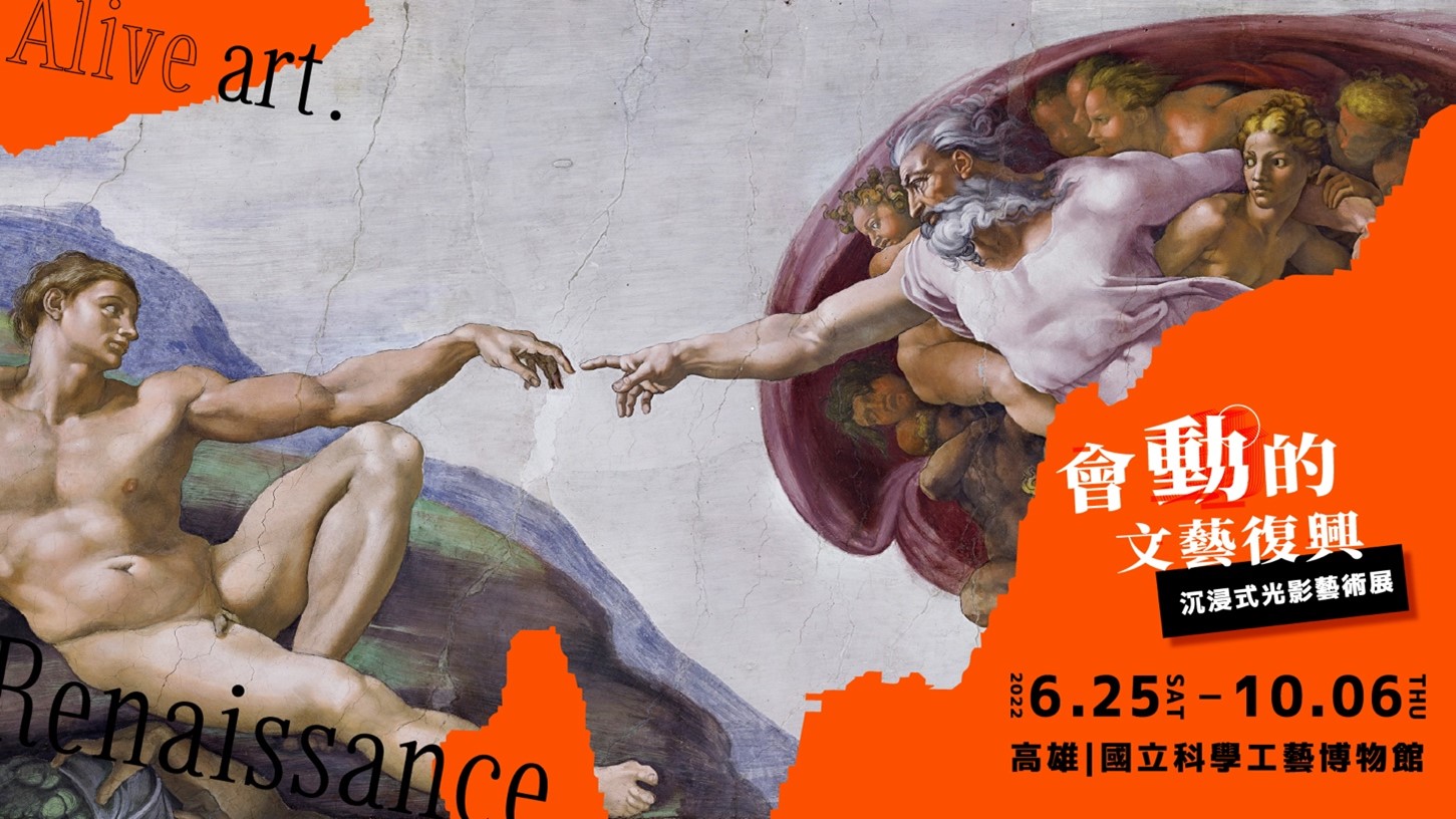 「會動的文藝復興 沉浸式光影藝術展」是全球第一個匯集文藝復興300年藝術精華的展覽,運用原寸仿真、AR介紹及540°環場播映、穹頂圓弧投影、立體環繞音效等技術,多元呈現及重新演繹全球36家博物館、美術館及私人收藏的文藝復興大師代表畫作,以及「世界文化遺產」佛羅倫斯聖母百花大教堂穹頂的巨幅壁畫「末日審判」,南臺灣觀眾不必出國就能飽覽人類藝術瑰寶,將是今年夏天「偽出國」最佳選擇!
