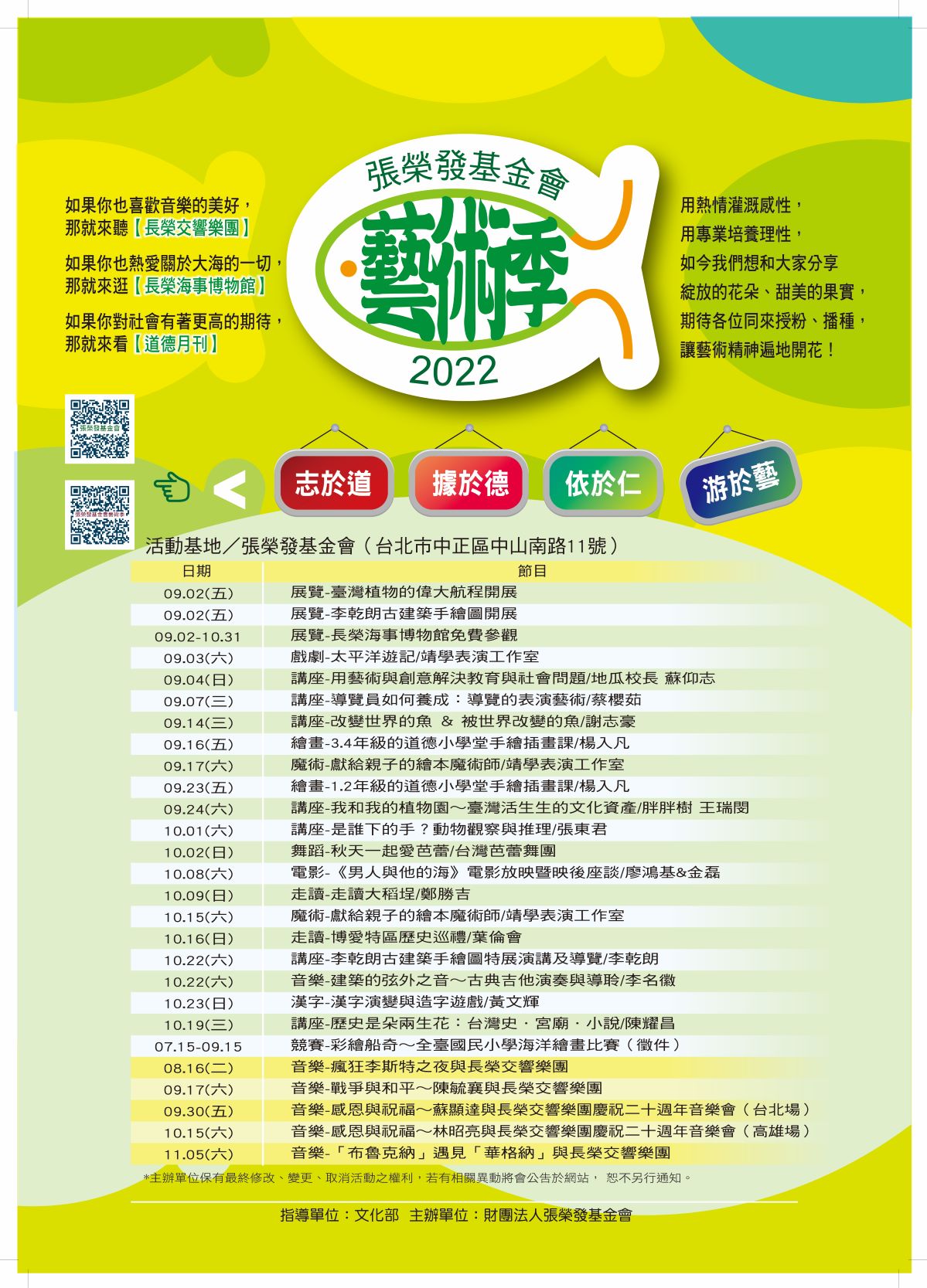 【2022 張榮發基金會藝術季】邀請到果陀劇場表演班老師-蔡櫻茹-擔任講師,講座中會提及表演的四個元素,拆解出導覽需要的表達要件。帶著這樣的基本觀念,進一步闡述導覽的藝術,當中包含如何與觀眾交流,如何抓住觀眾的焦點、掌握節奏等等。