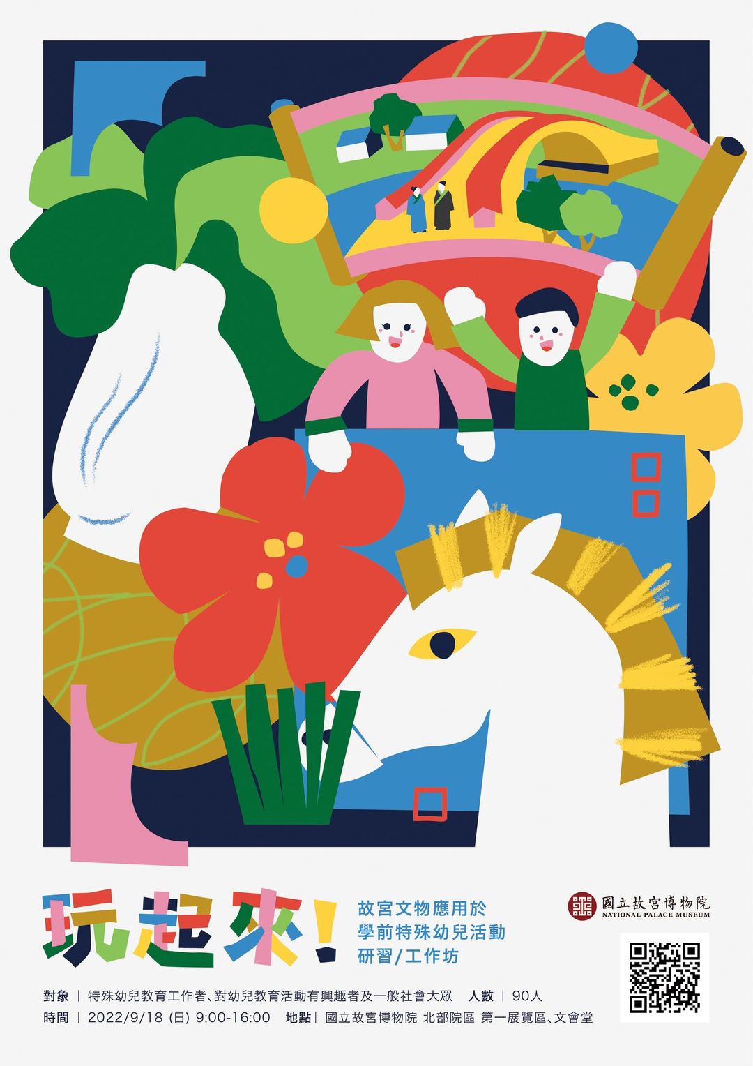 「玩」,是幼兒生活中重要的事,遊戲亦可促進認知、情緒及動作技能的正向發展。國立故宮博物院為了服務多元觀眾,開發文物應用潛能,近年陸續與學前特教、藝術統合教師、戲劇治療師等專業工作者合作,嘗試結合故宮文物素材與遊戲體驗,設計促進特殊幼兒認知、身體動作發展及感覺統合的藝術共融課程。