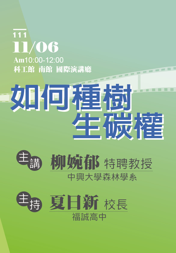 您知道甚麼是自然為本嗎?甚麼是自然碳匯呢?由國科會連續補助第20年的週日閱讀科學大師講座,於111年11月06日上午10時邀請國立中興大學森林學系柳婉郁特聘教授主講「如何種樹生碳權」,讓大家深入了解自然生態的保護行動。
