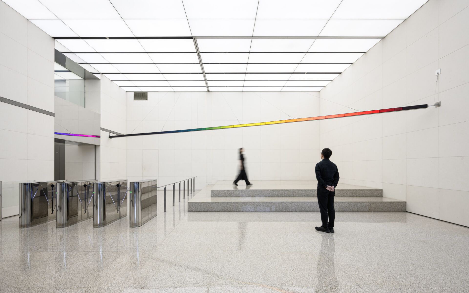 圖片說明一:《游移之所》透過特殊膜料的光學特性與人的行動路徑構成此件探討領域界線的作品