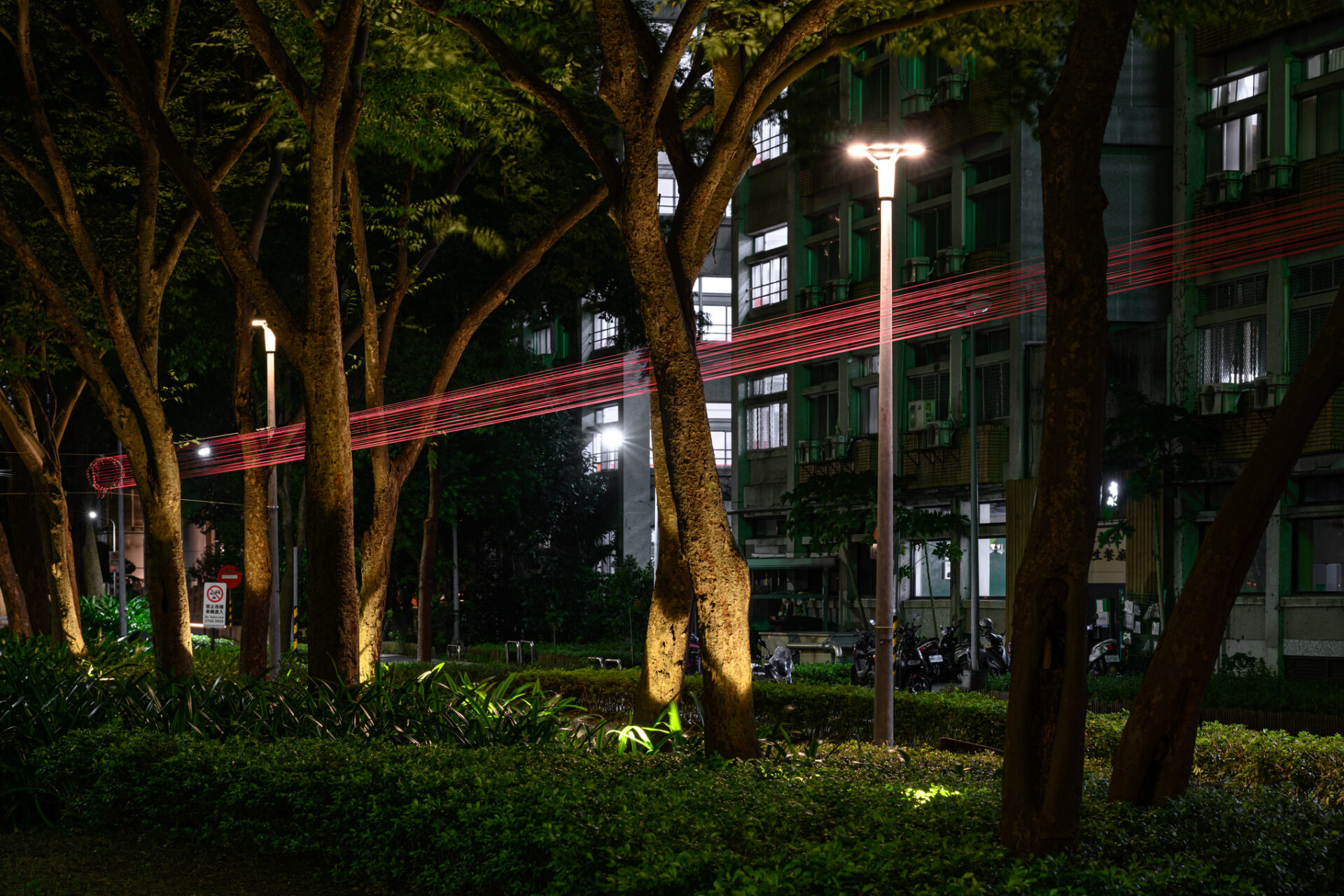 圖片說明二:《圖針》以鮮亮的「線索」形象,穿梭於忠泰美術館周邊的公共場域—瑠公圳公園一隅