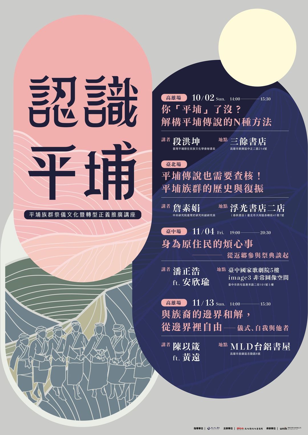 關於平埔族群的迷思、好奇、與疑惑,文化部文化資產局規劃了「認識平埔—平埔族群祭儀文化暨轉型正義推廣講座活動」,期望透過一系列不同講題的分享,開啟大眾瞭解平埔族群的契機,進而持續發現、理解更多關於平埔族的新面向。