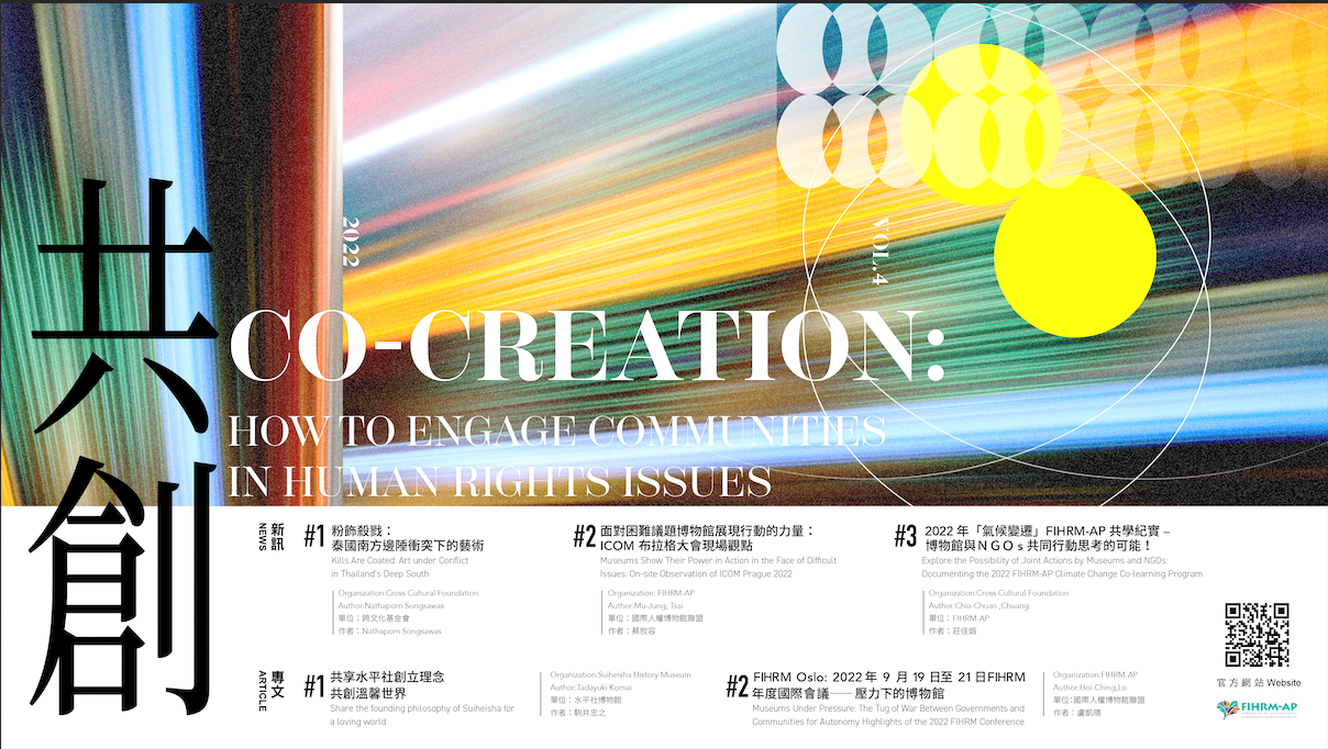 博物館新定義終於在2022年國際博物館協會布拉格大會(ICOM Prague)通過,反映出國際間博物館從業人員對新時代博物館價值的肯認。新定義提到「博物館以倫理、專業和社群參與的方式運作和交流,為教育、娛樂、反思和知識共享提供各種體驗。」,凸顯出博物館不應只獨尊專家與主流群體的觀點,而要讓社群參與其中,以落實博物館的社會責任。博物館透過共創的方式,與社群共同生產知識,在過程中共同學習建立連結,如此博物館才能真正包容與平權。本期發布五篇文章,皆涵蓋博物館或NGOs如何透過共創讓社群參與人權議題的討論,期望藉由不同的實踐方法,讓急迫危及的人權議題獲得更多關注。